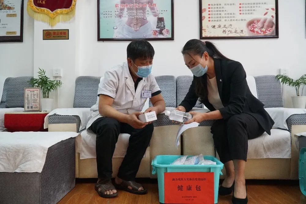 当天,保山市肢残人协会、盲人协会、聋人协会在市区残联相关负责人带领下,兵分三路组成“健康包”派送小组,把党和政府的关心亲手送到了残疾人实体店里。在保山中心城区象山路上的心韵聋人按摩店,接过市残联副理事长杨茂艳一行送来的疫情防控健康包时,聋人店主张需激动地用手比划,表达自己的感激之情。心韵聋人按摩店是保山城开办得较早的聋人按摩店,已有20多年历史,是解决聋人就业的一个成功示范点和品牌。“在疫情下,对生意有一定影响,靠着老品牌过硬的技能和热情周到的服务,每天平均都有30多人来消费,周六周日可以到60多人,大都是我们的回头客……”张需的婆婆66岁的李华英对记者说。同在象山路园丁小区旁的保山市关爱学校盲人按摩中心,店主是来自保山市关爱学校的教师赵乔焕。“疫情对店里的生意影响较大,有党和政府的帮助和关怀,我们要团结一心向前看,树立信心度难关。”赵乔焕对前来看望她并送上“健康包”的杨茂艳说。成立于2003年10月的保山市关爱学校盲人按摩中心,同时也是保山市关爱学校残疾学生实习、培训,就业基地。主要开展保健按摩、足浴、推背等技术的指导实践。这20多年间,已为众多视力、肢体、言语和部分智力残疾的学生在校学习按摩技能后走上就业之路做出了积极贡献。在为残疾人实体店送“健康包”的过程中,杨茂艳动情地对每一位自强不息的残疾人朋友说,一定要高度重视疫情防控,确保措施落实到位、人员管控到位,做到防控标准一个样,政策落实一个样,保障残疾人实体店正常、安全运行。同时努力提升自身技能,克服困难,做好服务,力保生活正常运行。有什么困难和要求及时和市、区残联联系。根据存在的短板和漏洞,及时进行整改,做好应急预案,以更强担当、更大力度、更实举措,共同做好疫情防控工作。
