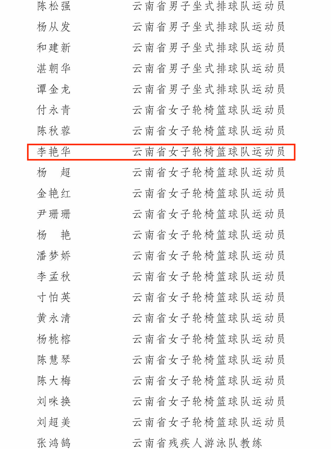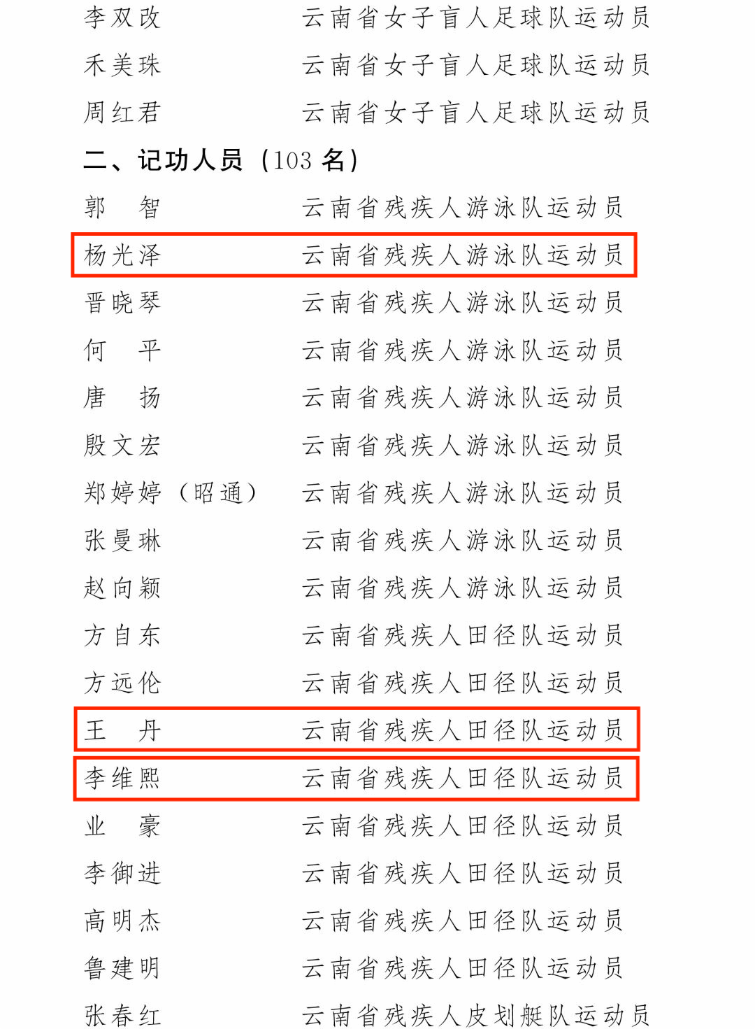 近日,为表彰在全国第十二届残疾人运动会上我省残疾人运动员的优异成绩和历史性突破,云南省人民政府发布了《关于给予我省参加全国第十二届残疾人运动会运动员和教练员奖励的通报》,全省144名残疾人运动员和教练员获得奖励,其中陆德豪、王国艳、吴俊3名保山籍运动员获记大功奖励,王丹、李维熙、罗晓云、王硕、李艳华、杨光泽6名保山籍运动员获记功奖励。