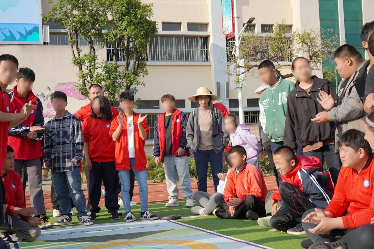 当日上午,保山市关爱学校的操场上气氛热烈,欢声笑语不断。来自关爱学校的老师、特殊学生们与市残联的志愿者齐聚一堂,共同参与到这场别开生面的旱地冰壶体验活动中。活动开始前,老师为孩子们详细讲解了旱地冰壶的规则与技巧,并进行了现场演示,孩子们围坐成一圈,眼神中充满了好奇与期待。