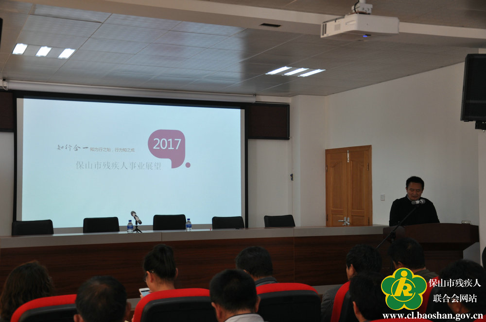 培训会分三个阶段进行,13日下午,在市残联培训室召开了业务工作培训会,市残联党组书记、理事长杨洪钧同志以《知行合一——保山市残疾人事业展望》为题,对全市残联系统的2016年工作进行了回顾,剖析了普遍存在的问题,分析了全市残疾人工作的面临的困境,对残联系统干部如何解决问题、克服困境,做好残疾人工作对进行了培训指导,以及对2017年的工作及未来的美好愿景进行了展望。