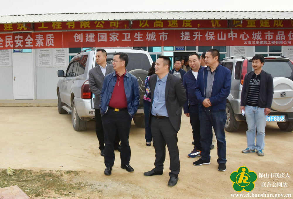 在施甸县,王兴宁理事长一行首先到保场社区,调研建设中的施甸县残疾人托养中心建设项目。王理事长实地了解工程建设情况,查看了项目规划图纸,听取了项目建设工作汇报。要求项目建设要充分考虑残疾人需要,搭建平台提供活动场所,营造一个温馨的生活环境,让残疾人入住后在得住、有事做。