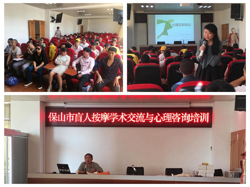 为了提高盲人按摩师的专业技能和综合素质,打开盲人按摩师的心扉,让他们走出困境,融入社会,实现让盲人按摩师“体面执业、稳定就业”的目标。5月19日至23日保山市残联举办了“助盲脱贫”盲人按摩学术讲座及心理咨询培训班,来自五县(市、区)的52位盲人保健按摩师参加了培训。