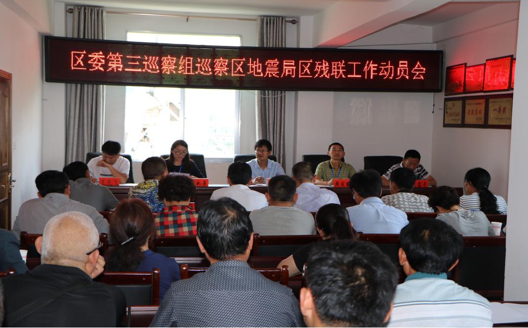 8月4日,隆阳区委第三巡察组召开对区地震局、区残联开展巡察工作动员会,区委第三巡察组组长段发疆、区委巡察办主任李树才等出席会议,区地震局、区残联领导班子和全体机关干部、近几年机关退休老干部、服务对象代表40余人参加了动员大会。