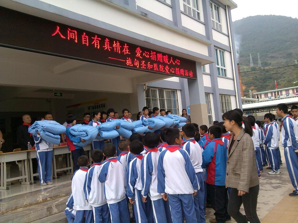 10月18日上午,在施甸县特殊教育学校举行由残联组织的爱心捐赠活动。捐赠爱心企业是施甸县圣和医院,此次该医院为我县特教学校学生爱心捐赠100套价值2.4万元的被子,帮助孩子们改善住宿条件,让他们健康茁壮成长。圣和医院计划每年为特殊教育学校进行一次免费体检。