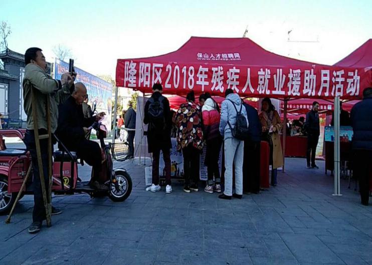 为全面贯彻党的十九大精神,提高、保障和改善民生水平,集中帮扶就业困难人员、残疾登记失业人员就业创业,2018年1月30日上午9:00-16:00,隆阳区残疾人联合会协同区人力资源和社会保障局在红花社区文化广场组织开展“就业援助月”现场招聘会。