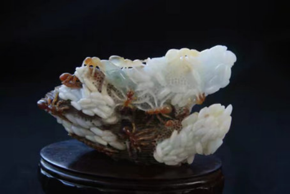 后来,由于有些木雕材料巨大,相较于他的身体,的确太难应对。随着大哥高发国大学毕业开始到腾冲闯荡,另一扇门开始为高发超打开。由于当年腾冲翡翠加工业火爆,高发国建议高发超把木雕技艺转移到玉雕工艺上来。自此,高发超开启了他的玉石雕刻之路。