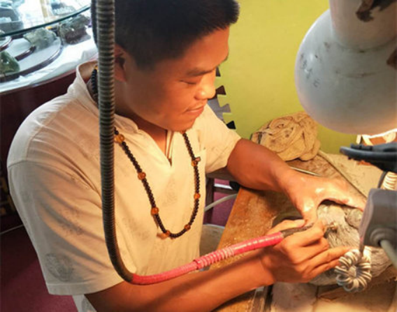 ●他从龙陵最偏远的山村走来,凭着一股子不向命运低头的坚韧毅力,执意与贫困决一死战。他说,我虽然腿脚不利索,但我还有一双手。依靠着这双手,他历经磨砺成长为目前云南省内最年轻的“玉雕大师”。不仅脱了贫致了富,还娶了妻当了爸。他说,老天不欺手艺人,创业路上勇者胜!