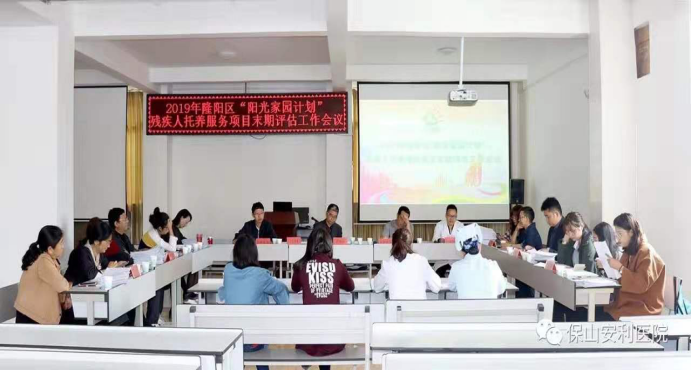2019年10月12日,隆阳区残联、区财政局、区民政局、区卫生健康局和永昌、兰城、九隆、青华、河图、永盛(街道)办事处等评估小组成员到安利医院会议室召开了2019年隆阳区“阳光家园计划”残疾人托养服务项目末期评估工作会议。