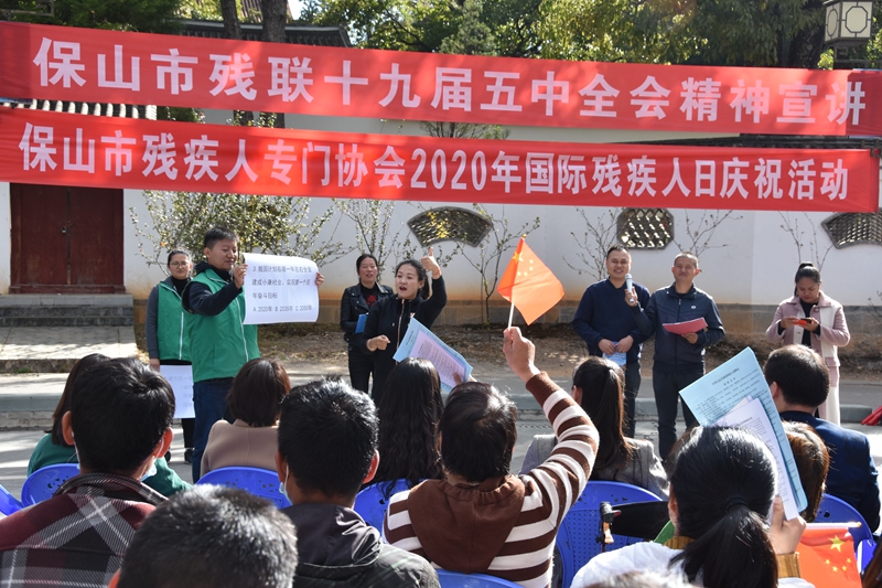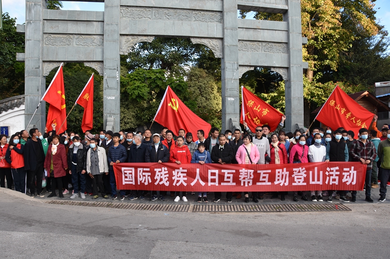 当天,正是第29个‘国际残疾人日’,太保山上阳光普照,温暖如春。我市五大残疾人专门协会在市残联的带领下,共同携手在太保山名人堂广场举行庆祝活动。他们通过互帮互助团结友爱的登山活动彰显残疾人弟兄姐妹们间的真挚情怀;在保山名山堂里吸取强大的正能量感受家乡的巨大改变和新时代的前进步伐;同时还结合当前脱贫攻坚奔小康和深入学习贯彻党的十九届五中全会精神的贯彻落实,通过知识抢答和歌舞才艺充分展示了新时代保山残疾人的新气象新作为,为‘助残脱贫迎小康,爱党爱国爱家乡’的时代主题献上他们最美的祝福。