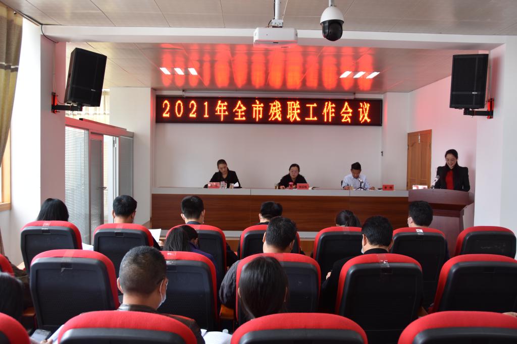 市残联理事长陈乐在会上做了2020年工作报告。报告指出,2020年,全市各级残联组织精准施策,线上线下齐发力,全面完成脱贫攻坚任务,落实疫情防控责任,拓展就业创业服务,提升康复服务水平,扩大文体宣传工作影响,维护残疾人合法权益,补短板、强基础、转作风、精服务,紧盯残疾人全面小康各项重点工作指标,全力推进了残疾人各项事业发展。