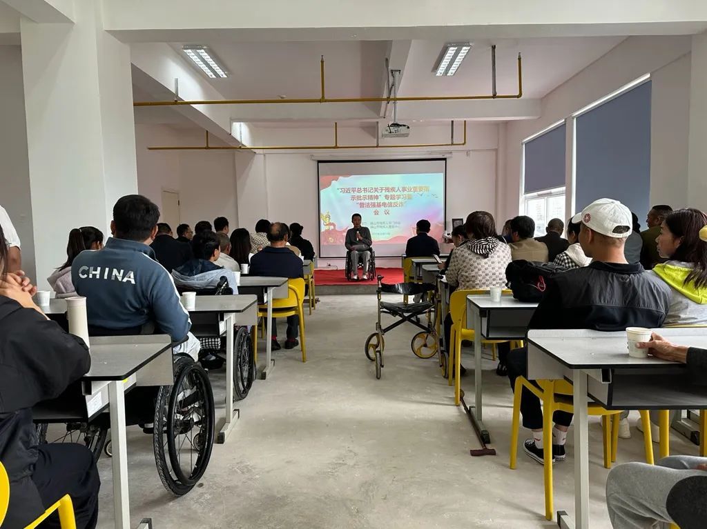 为了深入学习贯彻习近平总书记关于残疾人事业的重要指示批示精神和中国残联第八次代表大会精神,2023年10月13日,保山市残疾人专门协会在市残疾人康复中心举办“习近平总书记关于残疾人事业重要指示批示精神”专题学习暨“普法强基电信反诈”会议。保山市盲人协会、肢残人协会,市、区残联有关领导,市残疾人康复中心有关人员共71人参加会议。