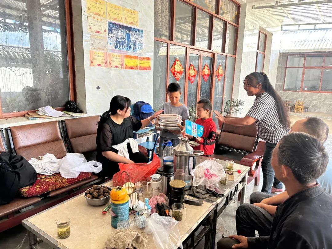 工作组入村后,与村干部进行工作对接后分成了二个小组进入21户挂钩联系户家中探访,与挂钩户访谈,了解他们家庭收入,农作物收获、生活用水、用电保障、家庭成员健康状况等。每到一户还粘贴了市残联干部职工自费、村上统一制作的民情联系卡,还向有儿童的家庭赠送了图书。