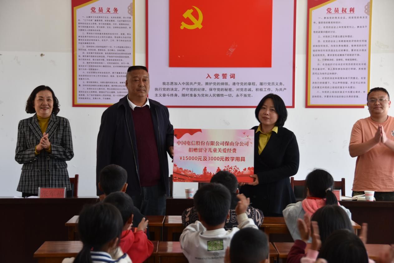 五是抓联动关爱促工作合力。2024年1月9日,争取中国狮子联会云南代表处向保山市认捐100位留守儿童餐费补贴,爱心善款累计10万元。中共保山市委书记杨军出席捐赠仪式并致辞,市委副书记赵碧原主持捐赠仪式;2024年1月,中国狮子联会云南代表处再次为我市留守儿童寄宿制学校专项捐助价值7.5万元的学生课桌椅;2024年3月5日,协调保山电信分公司捐赠挂联鸡飞村“留守儿童之家”工作经费1.5万元,捐赠鸡飞村小学价值3000元的学习用品和体育用品,捐赠当天,同时开展了学雷锋志愿服务活动,与孩子们开展了接力传球、猜谜语、打乒乓球等活动,促进了孩子们的身心健康。