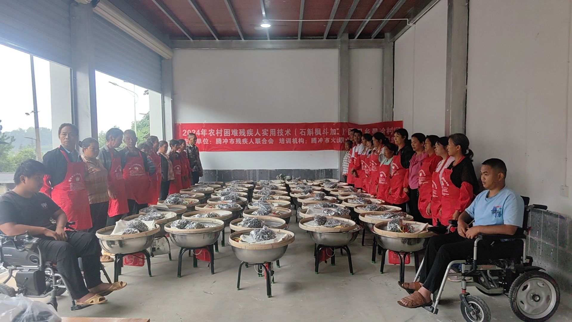 团田乡曼哈村村民范某的两个儿子因病下肢残疾,只能依靠轮椅行动,基本丧失劳动能力,这让本就生活艰难的家庭雪上加霜。腾冲市残联深入调研走访,带着对就业方向的思索、树立信心的决心以及如何改变生活的考量,结合当地残疾人实际情况,积极与镇村协调配合,于2024年7月,在曼哈村、燕寺村分别举办了一期农村残疾人实用技术培训(石斛枫斗加工),团田乡的90名残疾人参与其中。培训结束后,他们利用所学技术和免费发放的加工工具开始制作。再次询问范某时,他的脸上绽放出幸福的笑容。他说:“之前基本上都绝望了,对孩子不抱任何希望。现在好了,在党和国家政策的关怀下,各级部门和社会各界人生的关心下,两个孩子坐在轮椅上用双手也能实现人生价值了。虽然效率慢点,但每月也有近 4000 元的收入。下一步还要让他们学习更多技能,靠双手创造属于他们的幸福生活。”