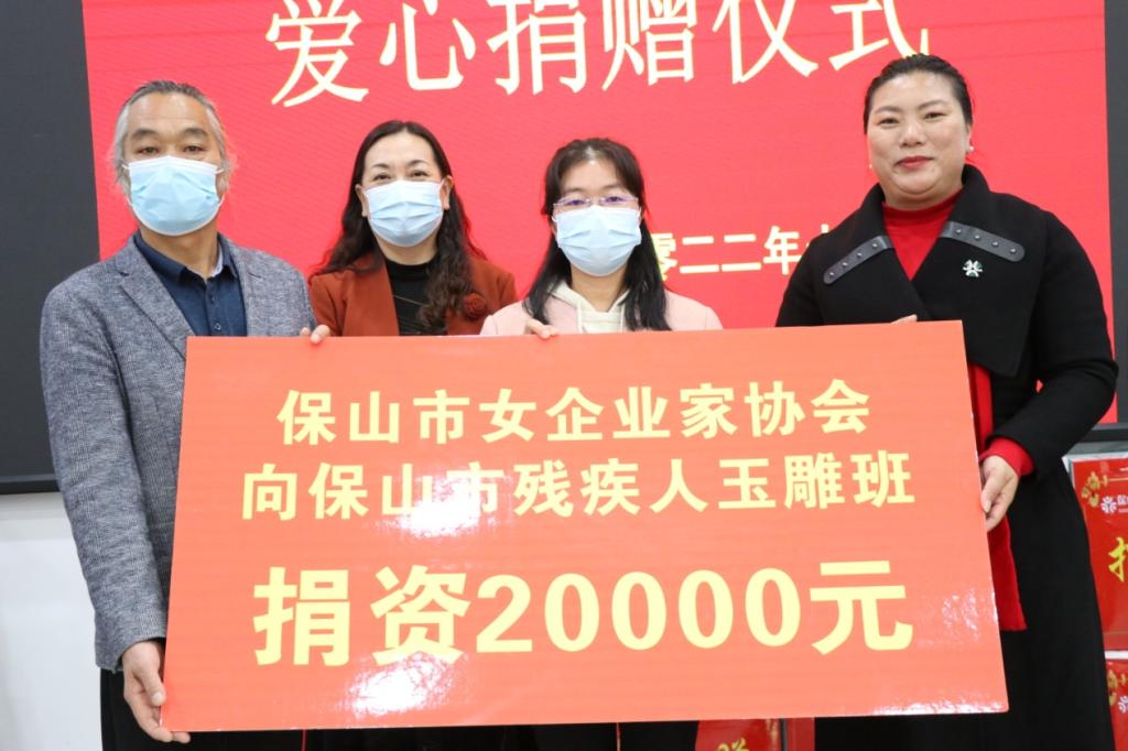 2022年12月14日,保山市残联联合保山市妇联、保山市女企业家协会开展“乡村振兴暖冬行动”志愿帮扶残疾人玉雕关爱班爱心捐赠仪式在龙陵职中举行。