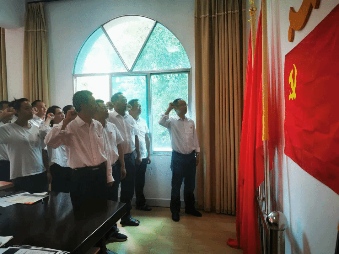 重温一次入党誓词忆初心。全体党员面向党旗庄严宣誓,重温入党誓词。在铿锵有力的宣誓中回望初心,汇聚起矢志不渝跟党走的磅礴力量。