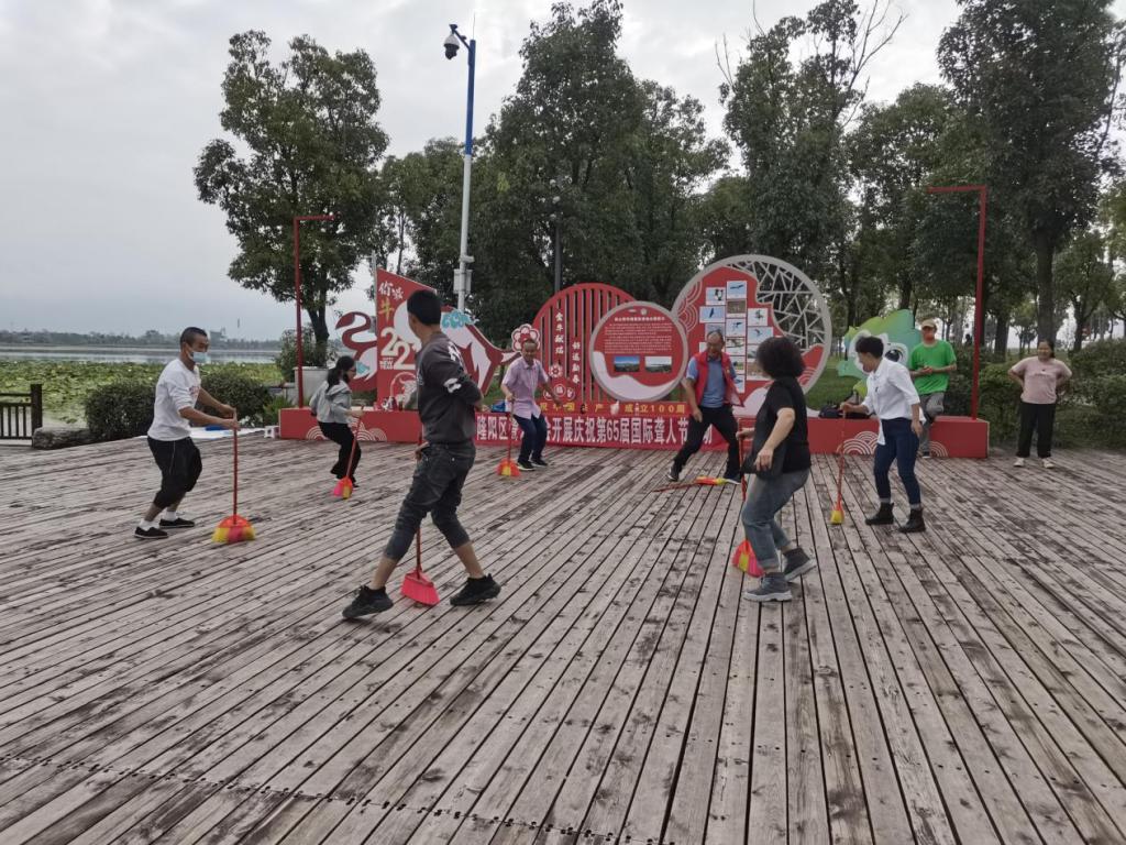 活动现场,听障朋友与工作人员积极地参与到团体项目游戏中,如抢扫把挑战、转圈跑步、穿越呼啦圈、谁想接球谁输游戏、转瓶子扔水球、扑克传面粉等丰富的文体活动,进一步地加强了残联与听障人士之间的沟通交流,增强凝聚力。同时,区残联工作人员现场给听障朋友分发了残疾人相关政策宣传册、人民防空法小知识、反有组织犯罪法小知识共78余份材料,旨在提升听障人士对相关法律法规的认识与理解以及学会用法律维护自己的合法权益。