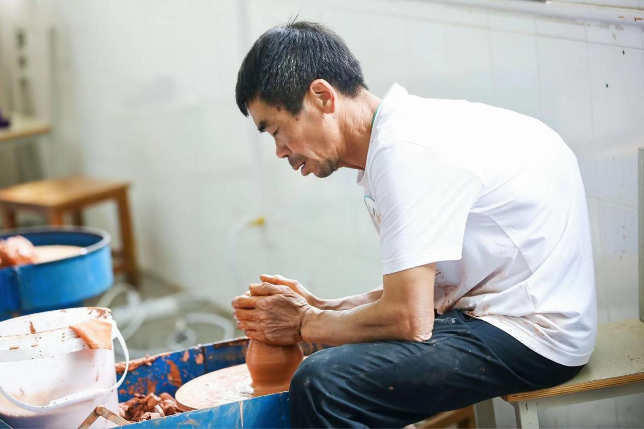 图为保山选手刘湘道在陶艺项目竞赛中