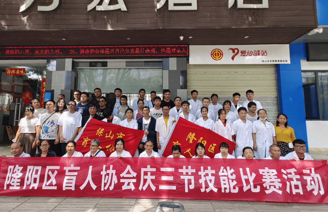 为进一步增强盲人朋友的按摩技能,展示盲人自尊、自强、自信精神风貌,在中秋、国庆、盲人三节来临之际,隆阳区盲协于9月26日上午在力宏酒店开展了庆祝三节技能比赛活动,此次活动有盲人朋友及家属、市区残联工作人员及志愿者共27人参加。