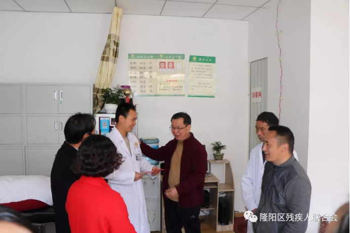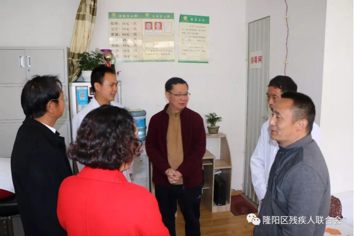 2月5日下午,省残联理事长王兴宁一行,在市残联理事长杨洪钧、隆阳区委副书记钟厚权、区政府副区长冯江红的陪同下,深入我区慰问残疾人按摩店从业人员。