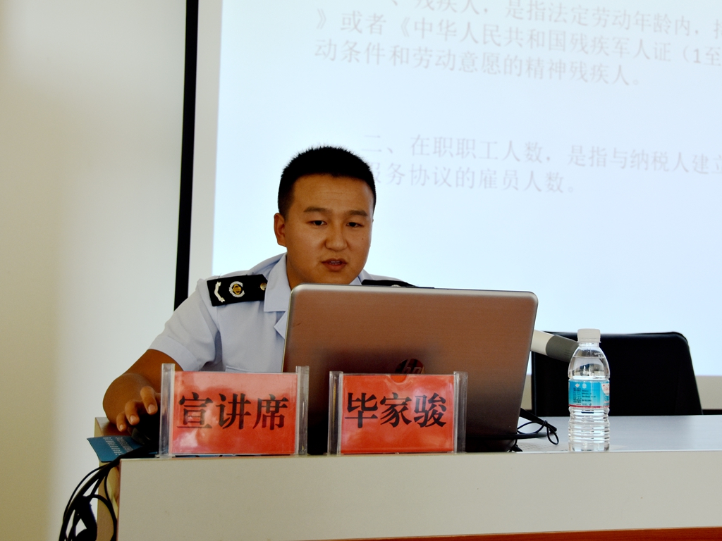 会上对本次享受减税降费政策的相关定义,残疾人就业单位增值税、企业所得税减免政策,残疾人个人所得税减免政策进行了详尽的解读,同时还对涉及的残疾人个人减免税政策、重点群体创业就业税收优惠政策等进行了延伸讲解。