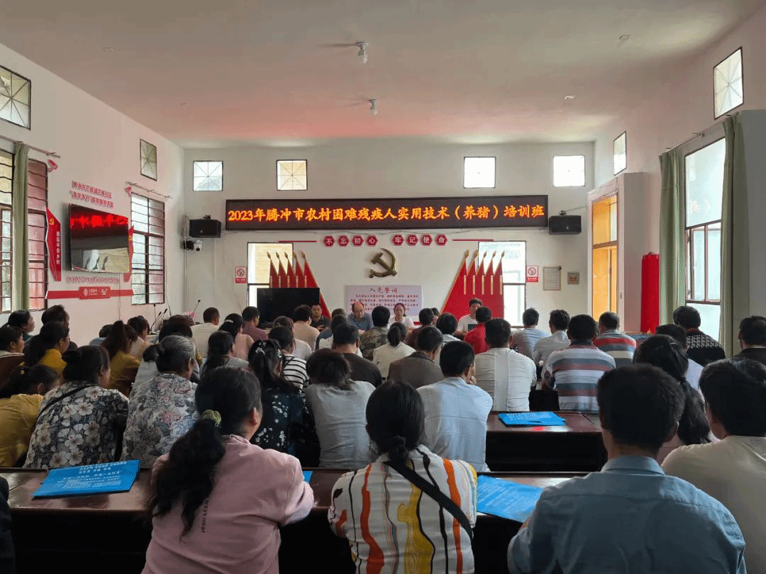 7月19日,2023年腾冲市第二期农村残疾人实用技术培训班(生猪养殖)在芒棒镇顺利开班,89名残疾人参加了培训。