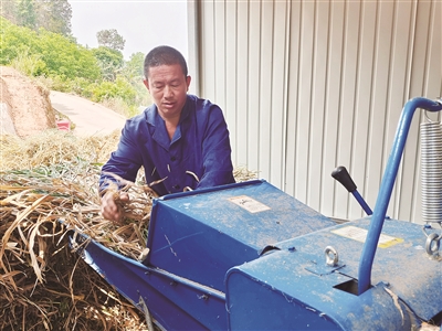 谷雨时节,走进施甸县仁和镇金鸭塘村,只见李丛升夫妇已经开着三轮车从地里收割了满满的皇竹草回家了。家门口的厂房里堆满了50多个100多斤的青储饲料包。今年44岁的李丛升说:“去年10月,刚刚把家中的七、八头肉牛销售后,购置来一个饲料包装机,专门帮村中的养殖户进行饲料青储包装。”